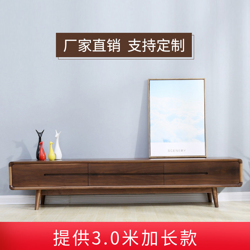 黑胡桃木电视柜简约北美实木v橡木储物柜原木色可定制整装茶几组
