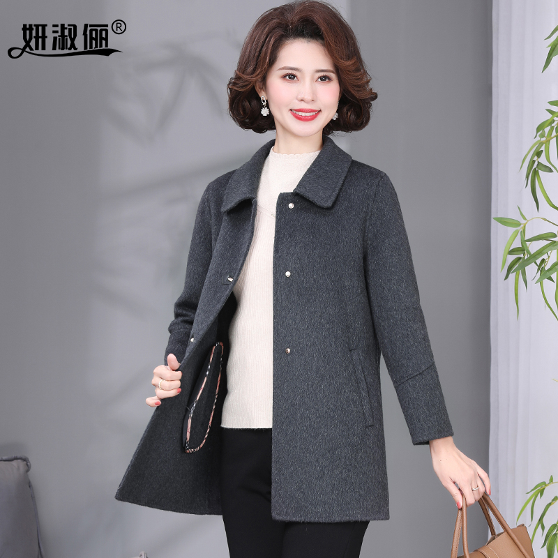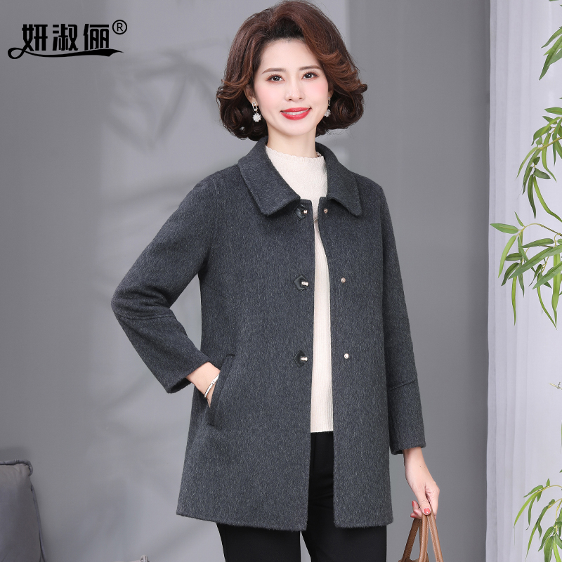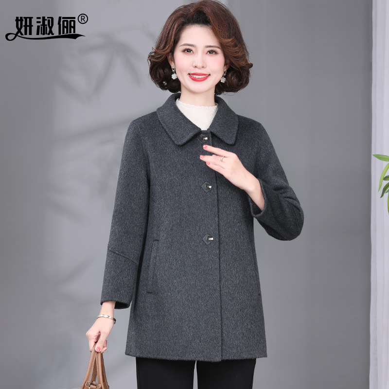 妍淑俪时尚妈妈中老年羊毛呢大衣