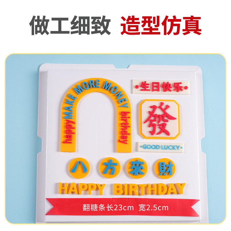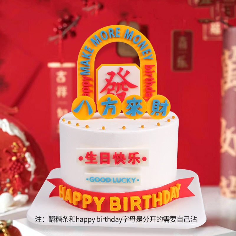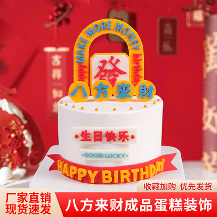 八方来财巧克力蛋糕装饰摆件爸爸发财父亲节翻糖生日快乐字牌插件