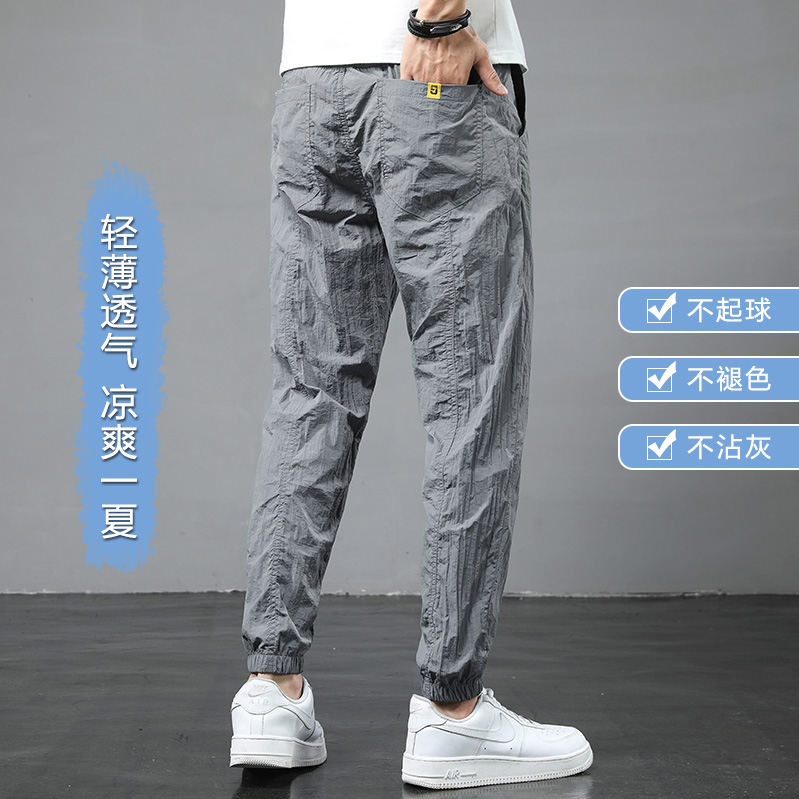 休闲九分裤男潮流百搭宽松运动裤冰丝夏季男士韩版束脚裤子潮夏裤