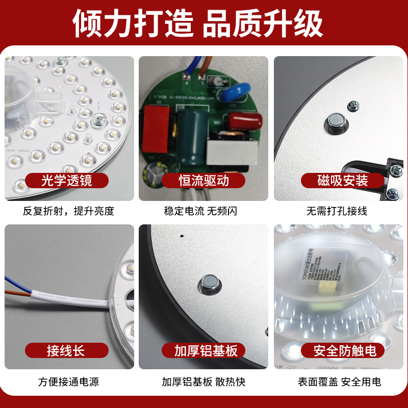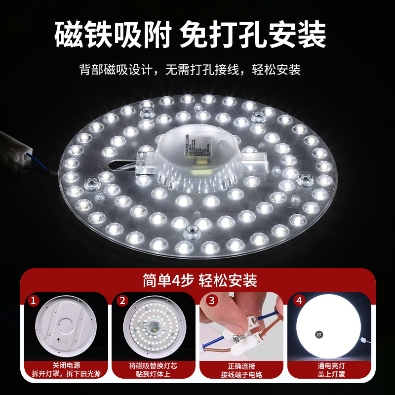 通士达led灯板改造贴片灯泡led吸顶灯芯圆形灯盘灯片磁铁模组球泡