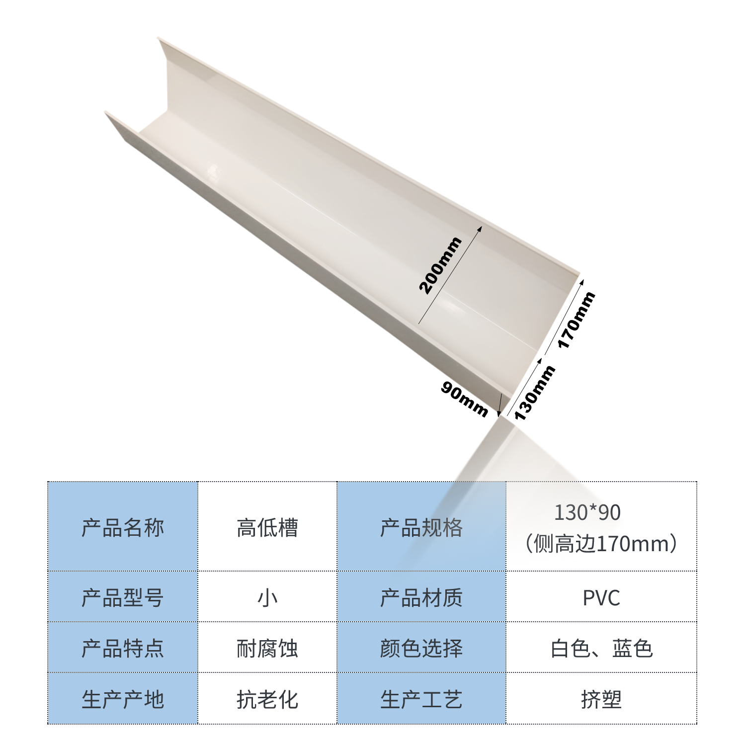 小高低槽PVC排水槽滴水屋檐沟天沟雨水槽种植引水光伏天沟pvc槽