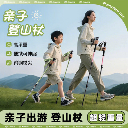儿童登山杖户外徒步装备手杖铝合金超轻折叠伸缩拐杖专业爬山棍
