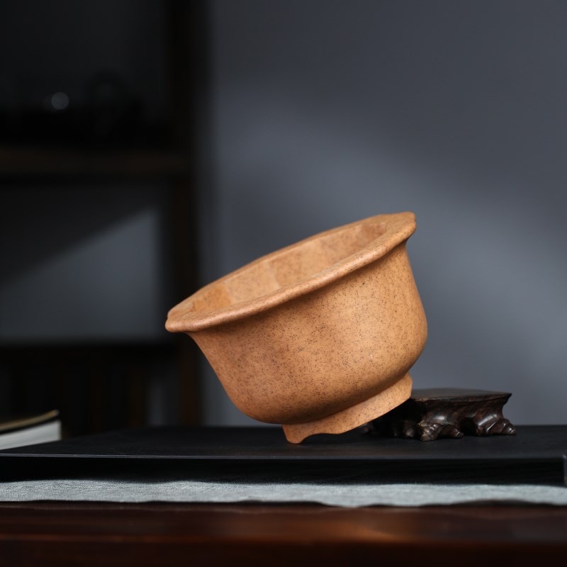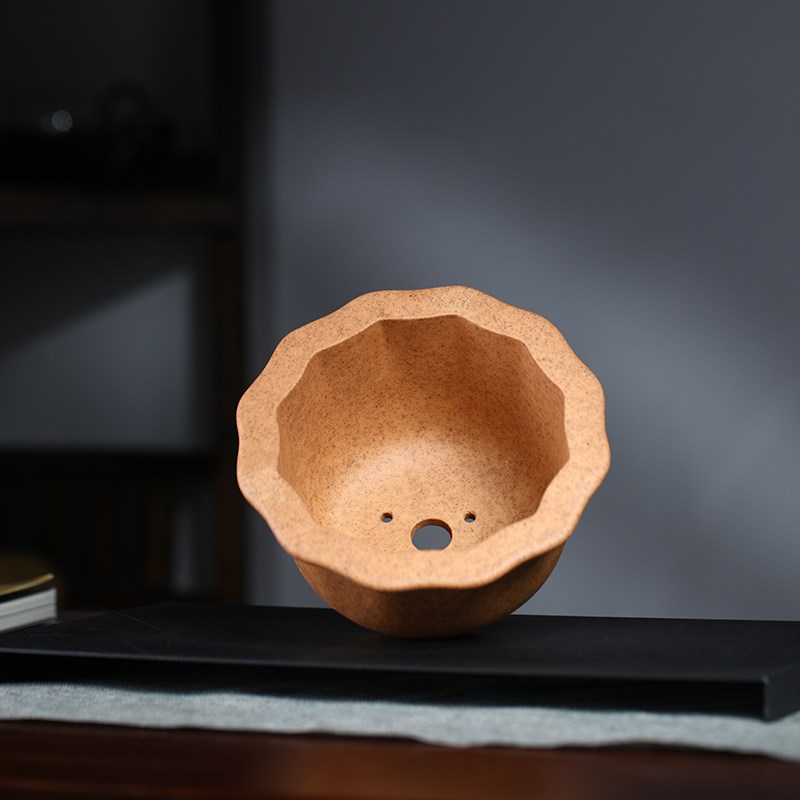 清香阁紫砂 唯珍手工葵花口花盆 柴烧古典桌面绿植花器盆景兰花盆