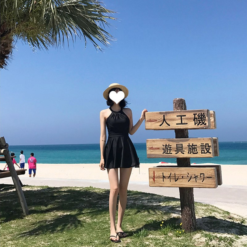 泳衣女2025新款大码胖mm最爱学生显瘦遮肚保守黑色连体裙式泡温泉
