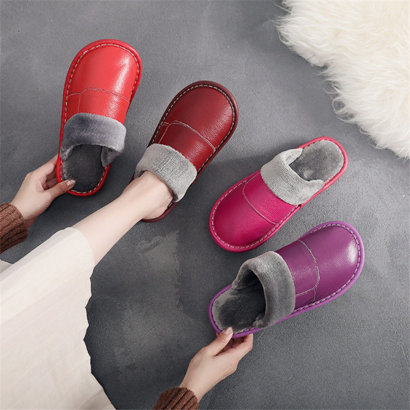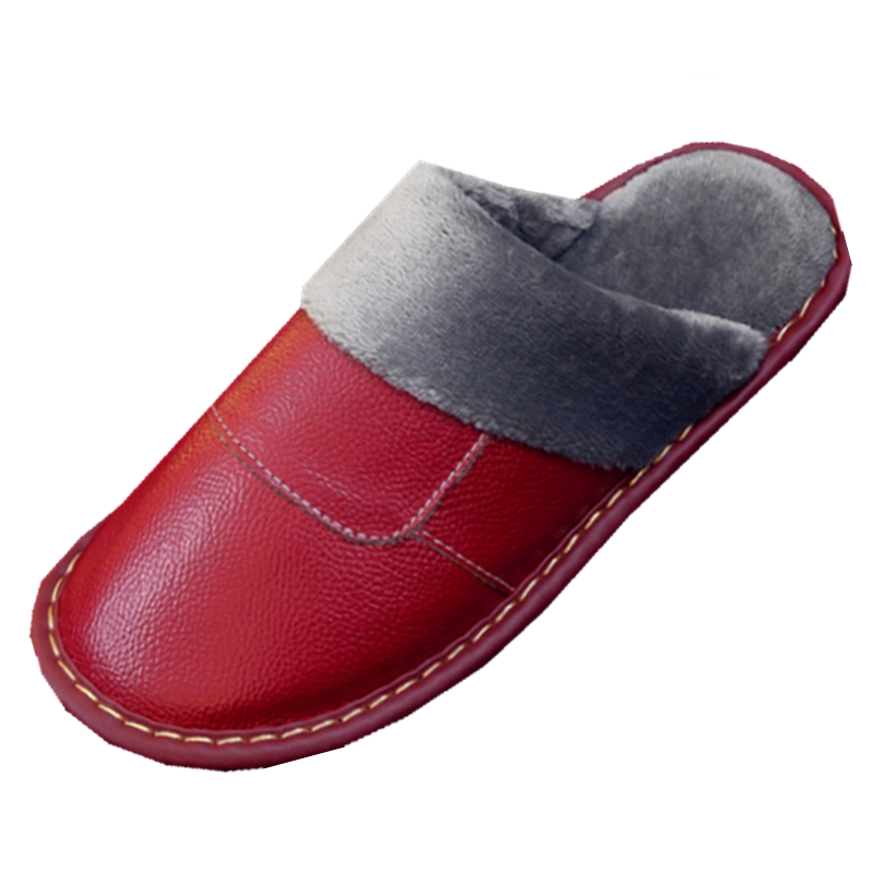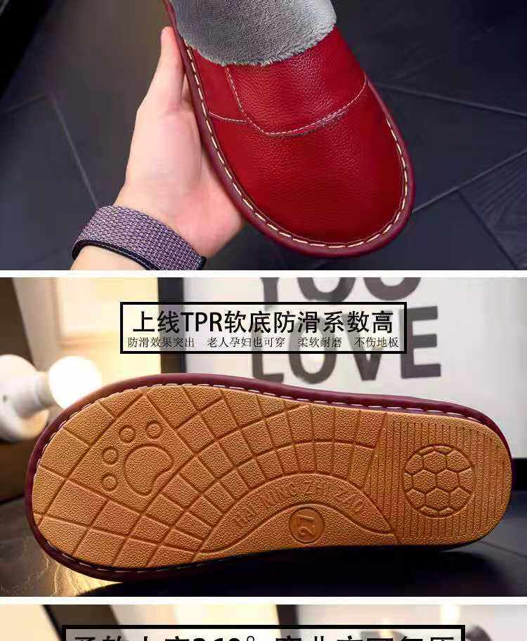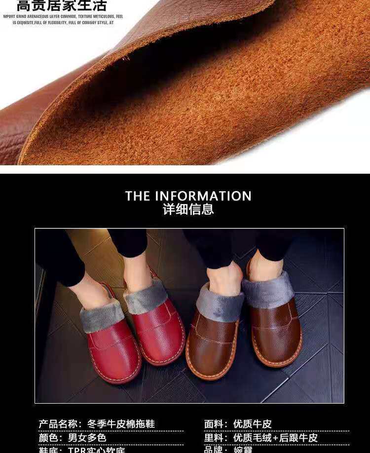 棉拖鞋男士真皮大码冬季保暖头层牛皮情侣防滑室内居家防水皮拖鞋