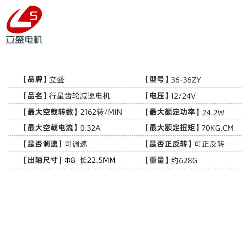 双头36-36ZY行星齿轮直流减速电机12v24v大扭力微型可调慢速马达