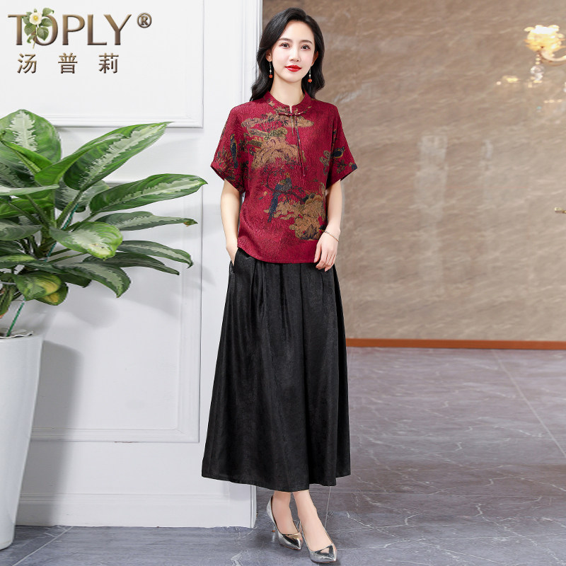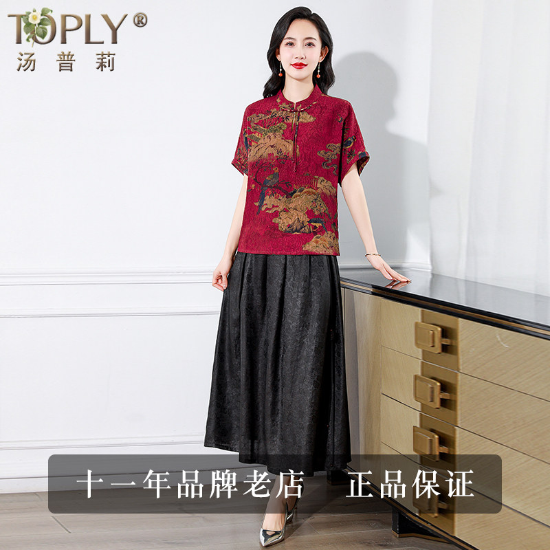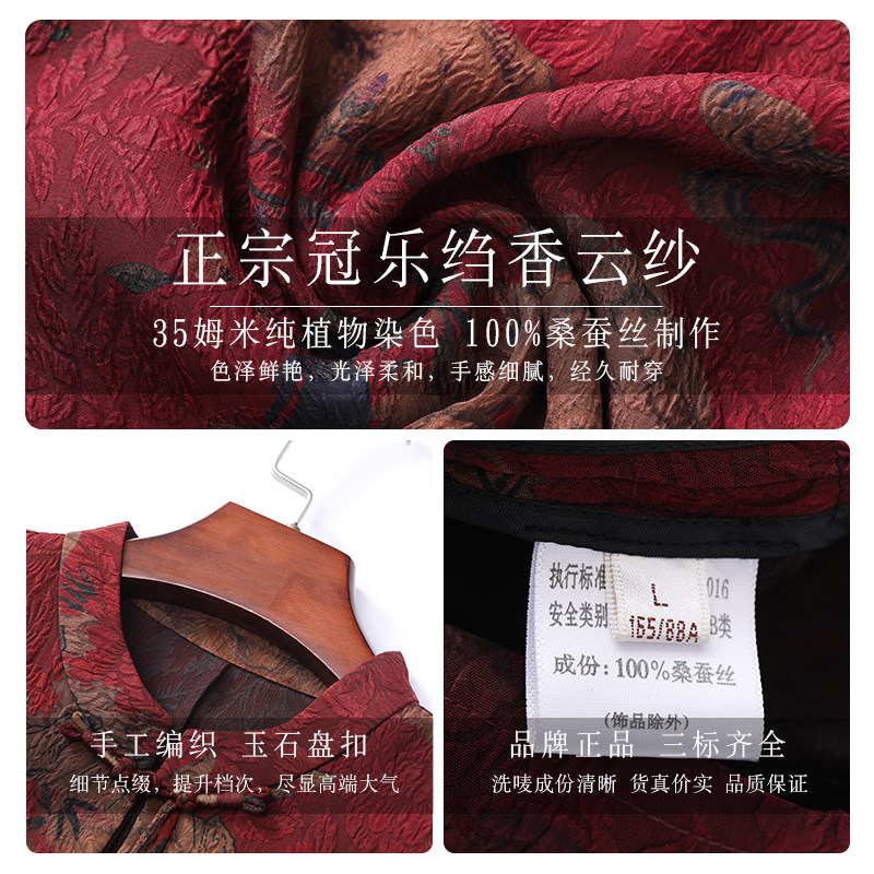 高端品牌香云纱上衣女桑蚕丝新中式复古优雅大码妈妈真丝衬衫新款