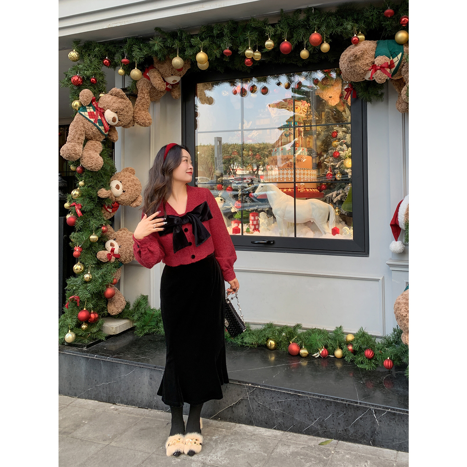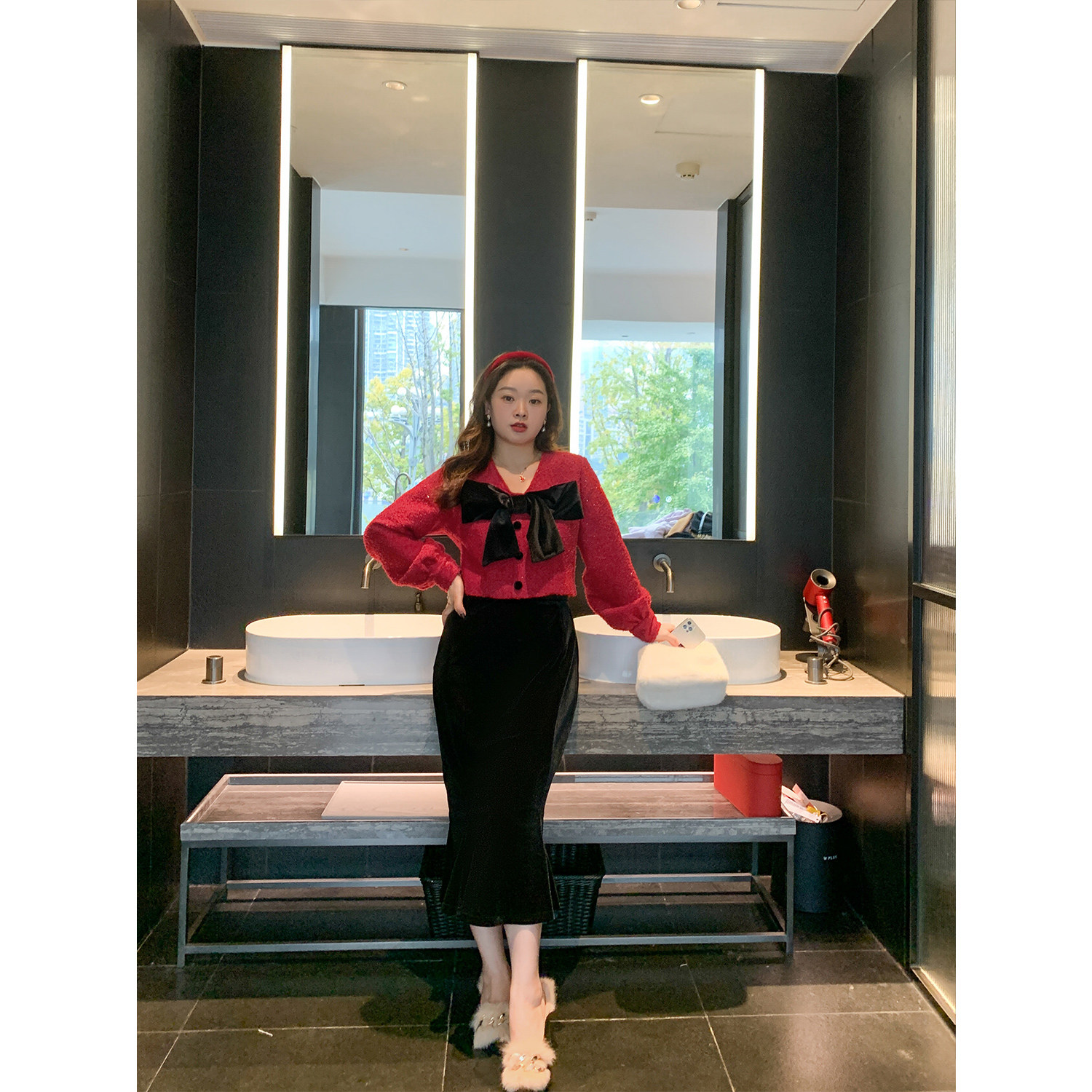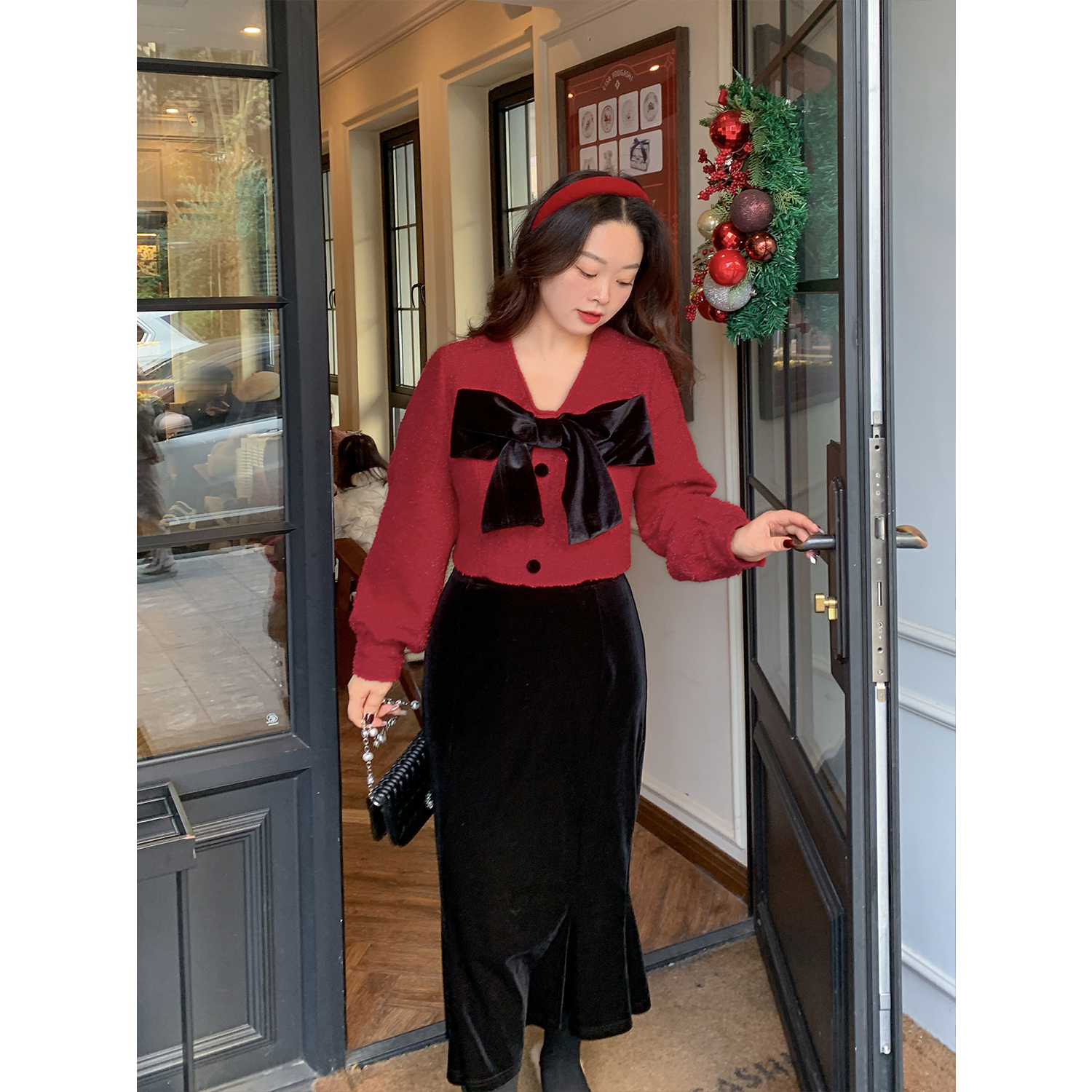 DM100微胖mm大码女装2023冬新款长短款高腰小香风丝绒鱼尾半身裙