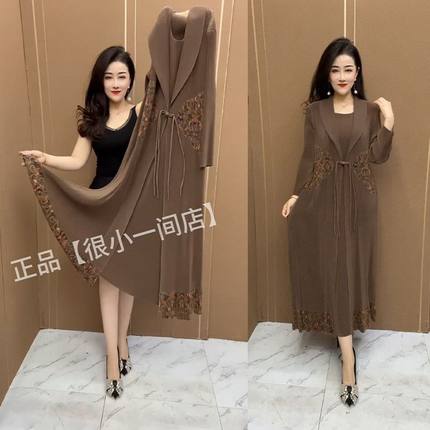 中年妈妈时尚民族风假两件风衣裙