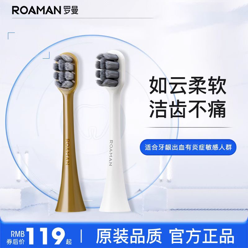 ROAMAN罗曼电动牙刷头新款东丽呵护型刷头超细软毛敏感T10X-B专用
