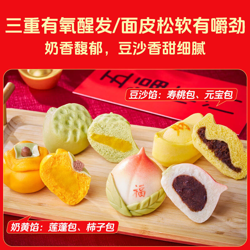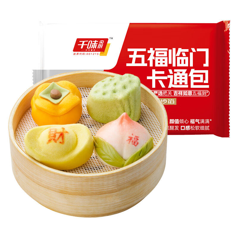 千味央厨五福临门卡通馒头奶黄包豆沙包儿童早餐半成品速冻年夜饭