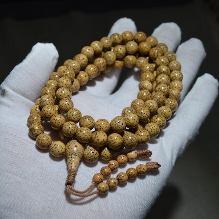天然星月菩提108颗佛珠手串原生态干磨鸡油黄正月圆珠黄金籽项链