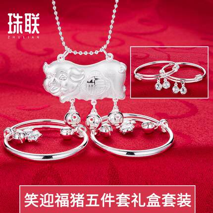长命锁宝宝手镯婴儿纯银脚镯满月银银饰套装儿童999小孩民族风五