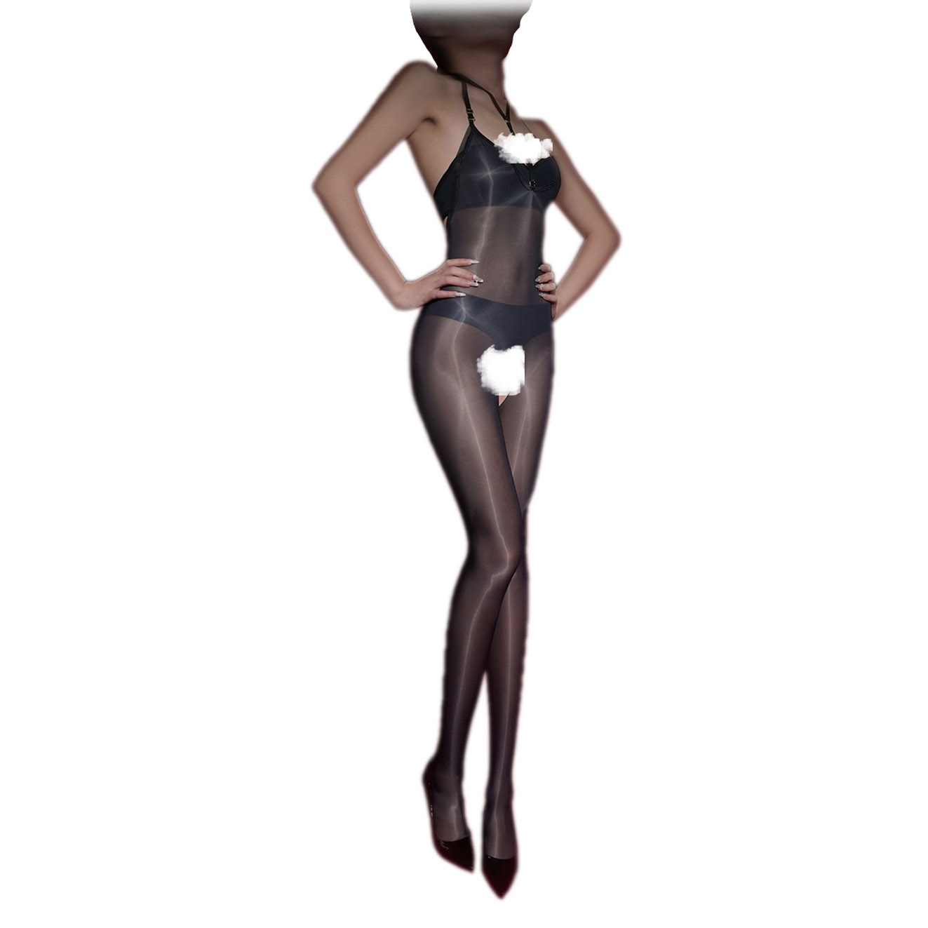 霏慕超薄超滑高密油亮挂脖连体丝袜女黑丝袜性感全身袜全包袜情调