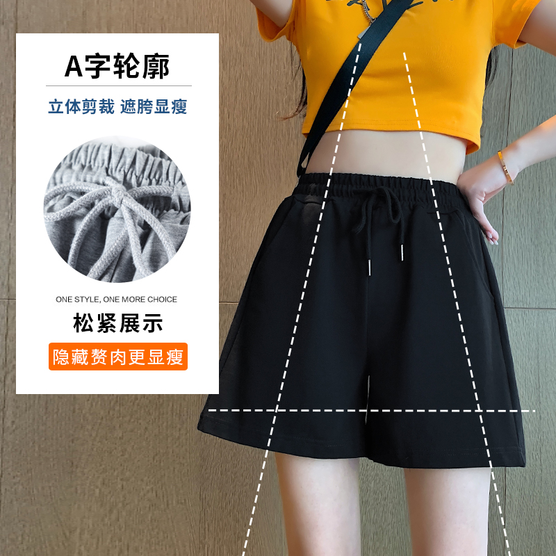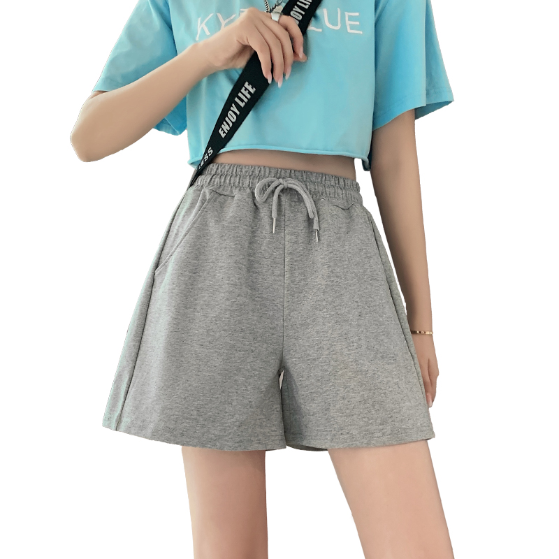 灰色运动短裤女夏季薄款高腰宽松阔腿外穿三分显瘦休闲裤子ins潮