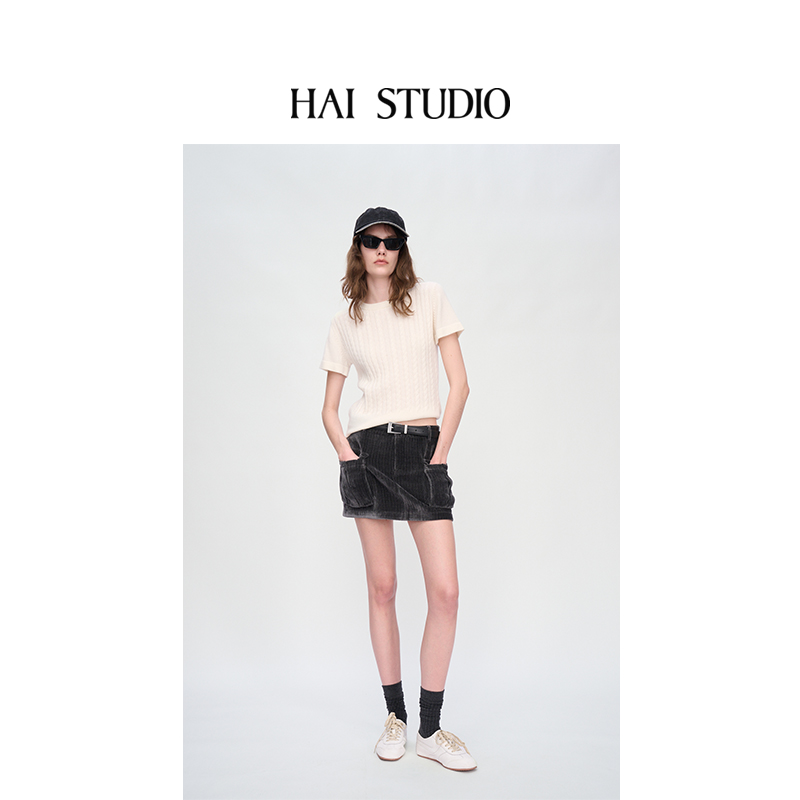 HAI STUDIO2025秋冬新品 女士灯芯绒裙裤 休闲工装短裤防走光裙裤