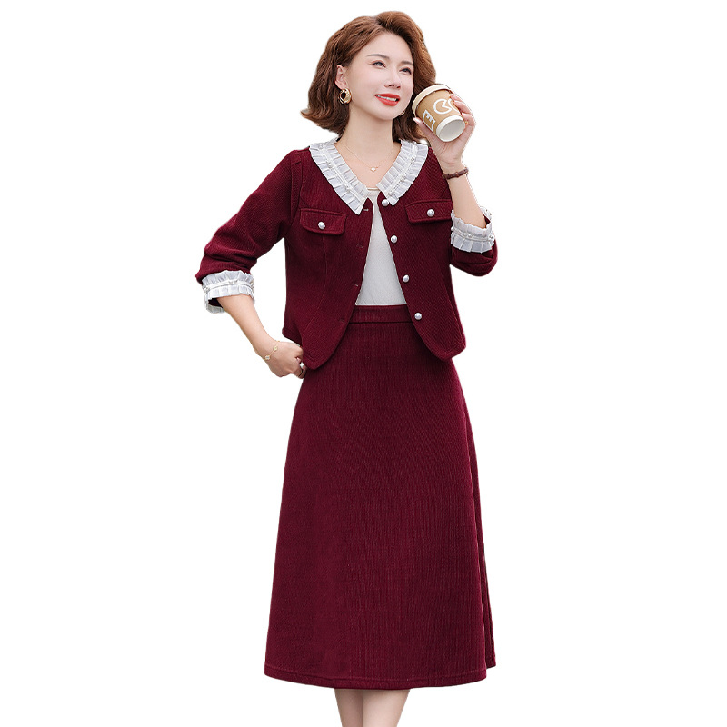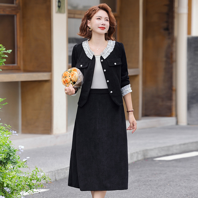 时尚中老年女装大码妈妈裙子套装洋气外套+半裙裙子女50岁秋装女