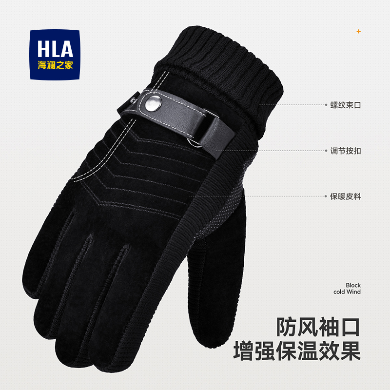 海澜之家手套真皮男士2025新款秋冬加绒加厚保暖摩托车电动车户外