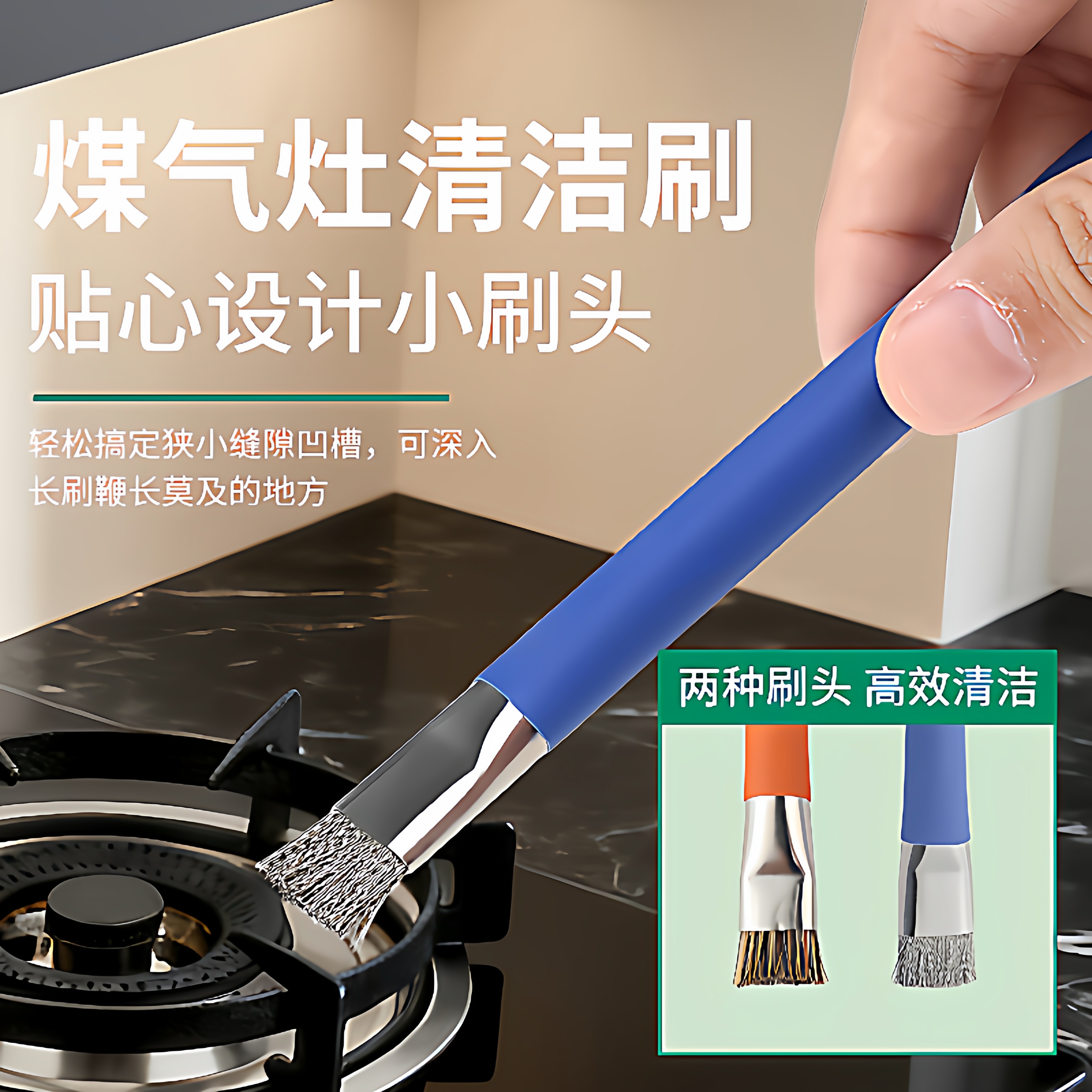 燃气灶清洁刷厨房灶台小钢刷强力去污煤气灶刷多功能无死角缝隙刷