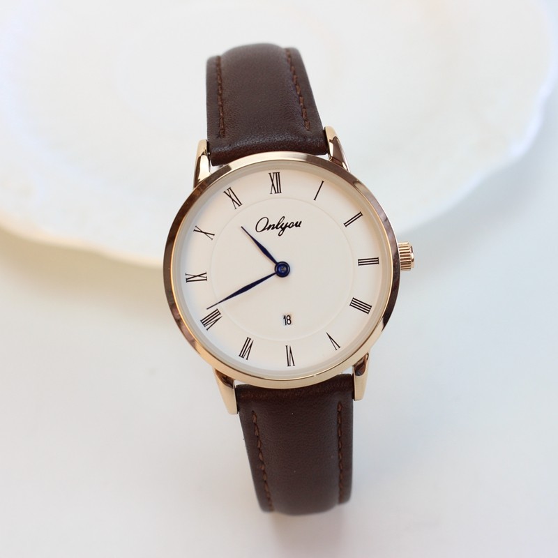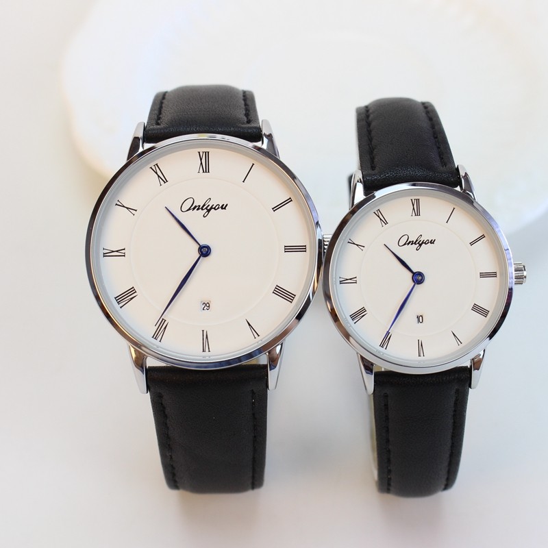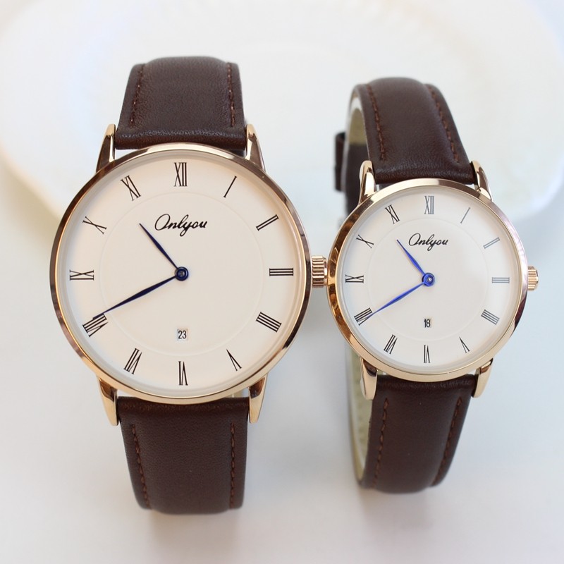 奥利妮男表超薄男士休闲手表石英表防水真皮带商务日历女表情侣表