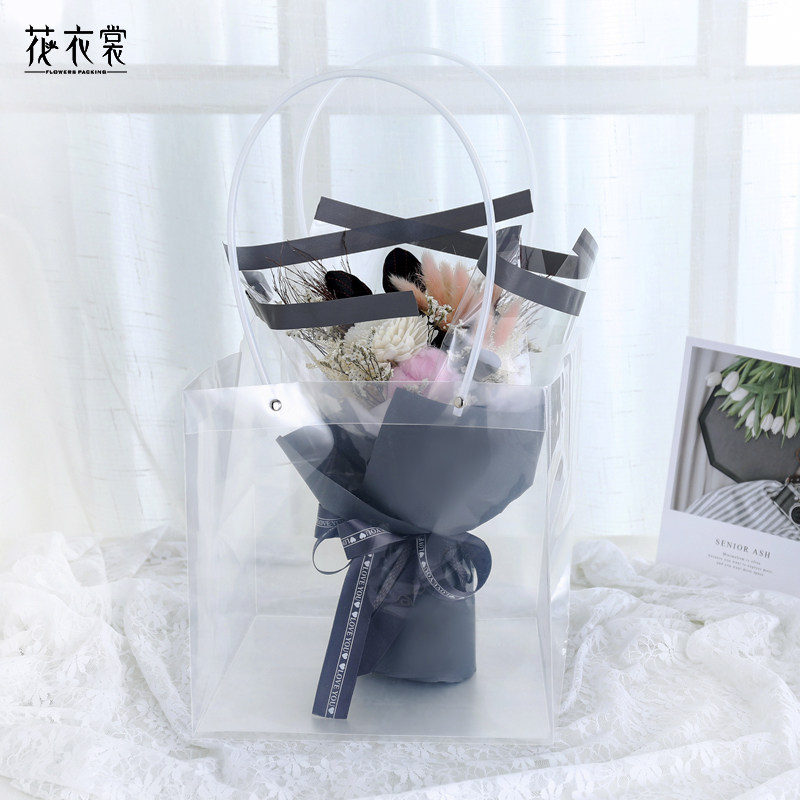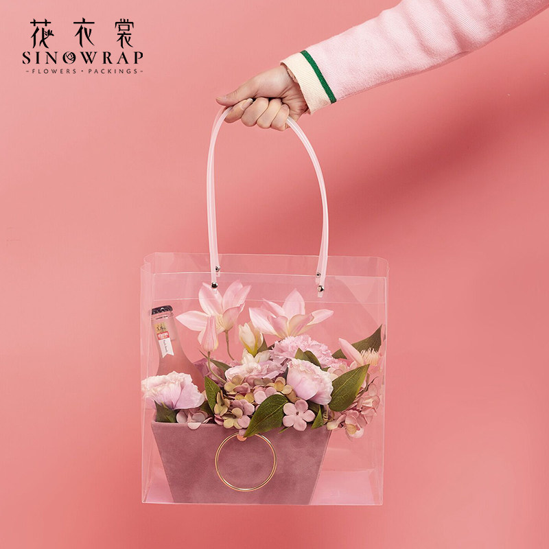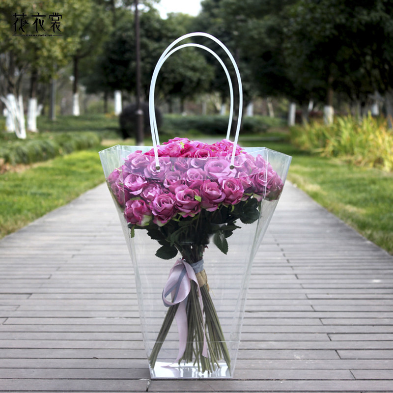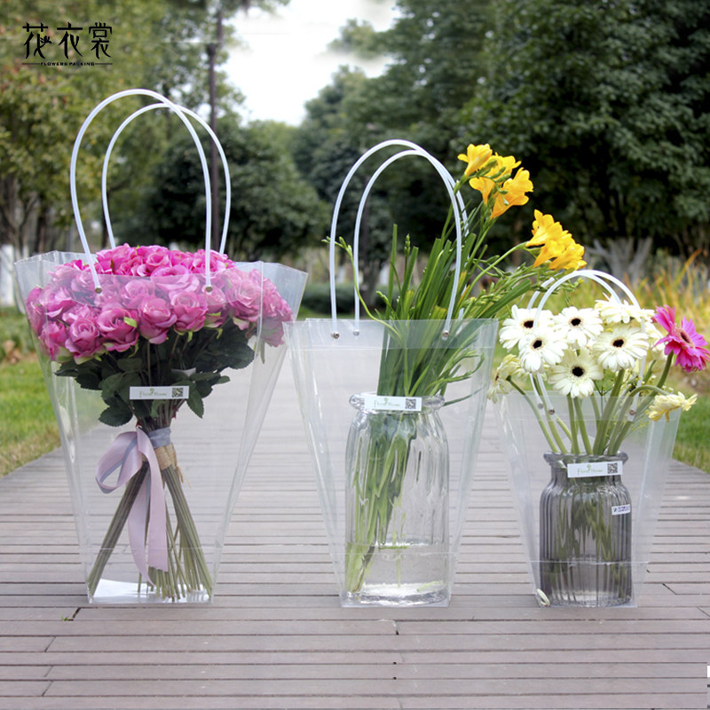 花衣裳长柄提袋 鲜花花束包装袋手提透明节日礼盒礼品袋 创意搭配