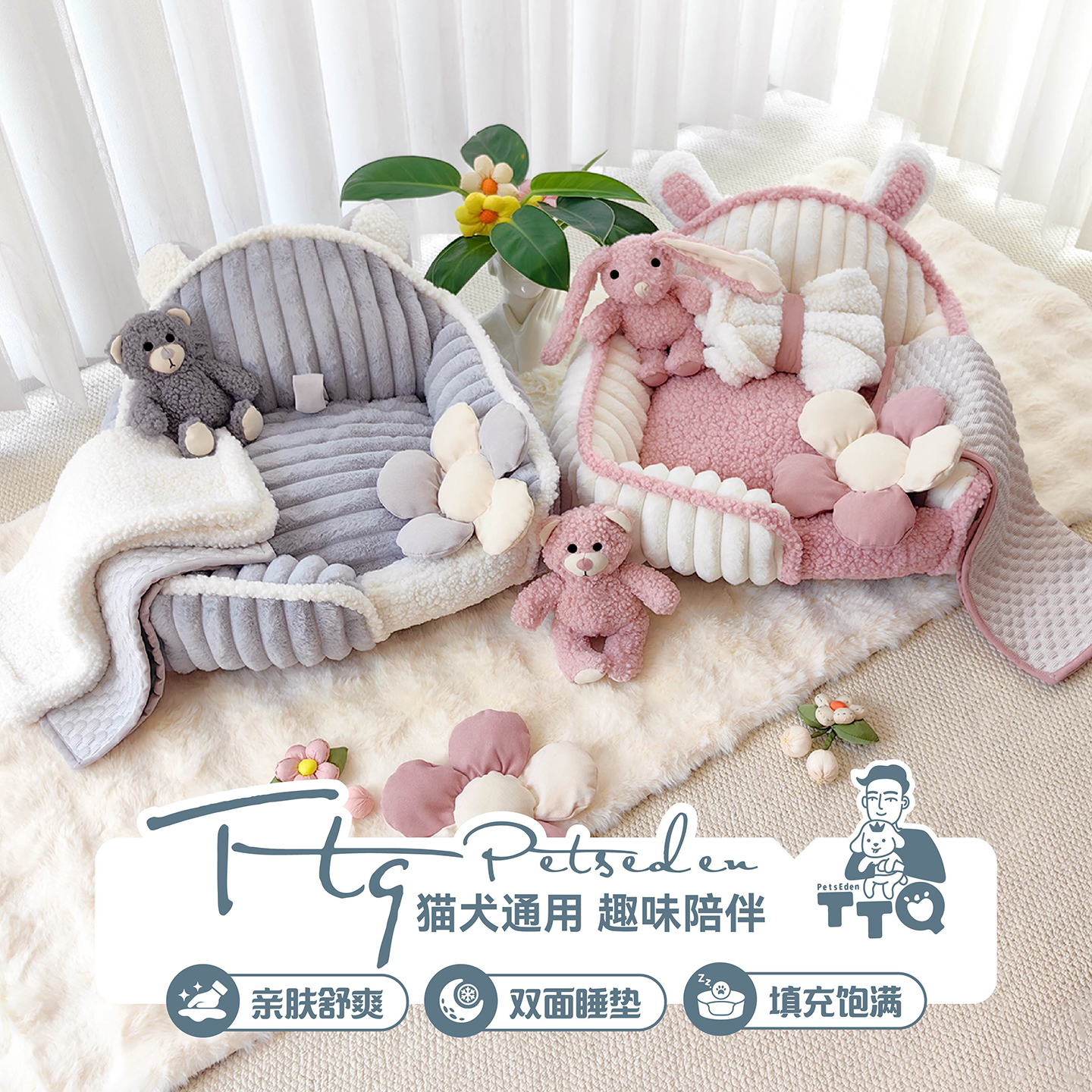 TTQ原创设计ins风猫窝可拆洗狗窝网红奶油风踩奶宠物沙发秋冬盖被