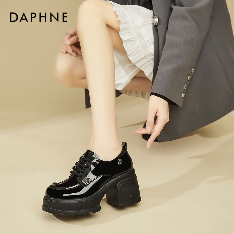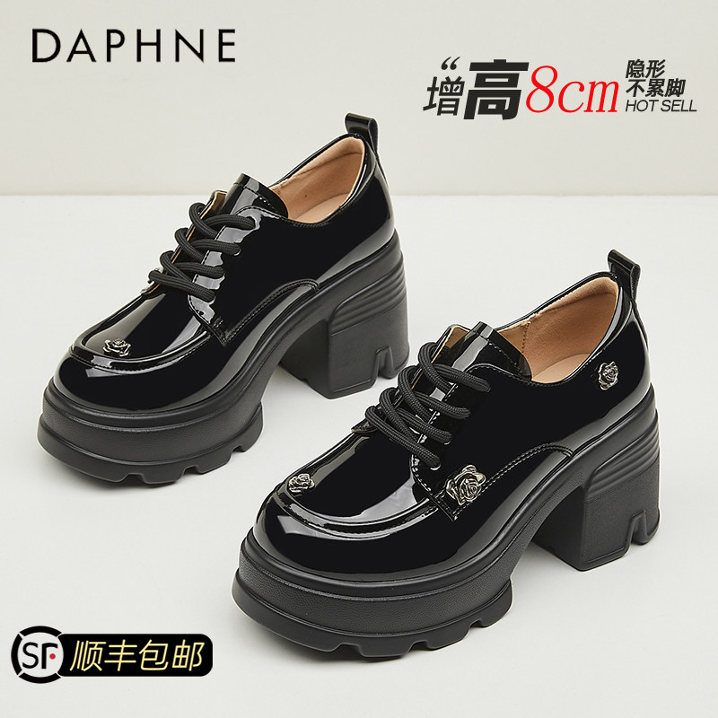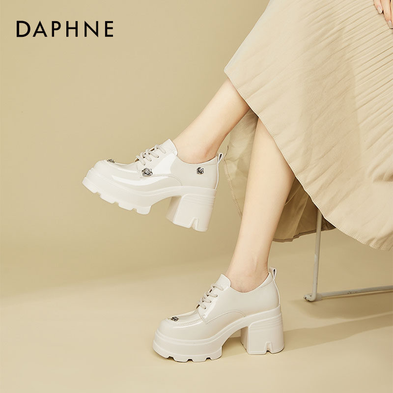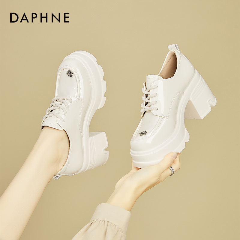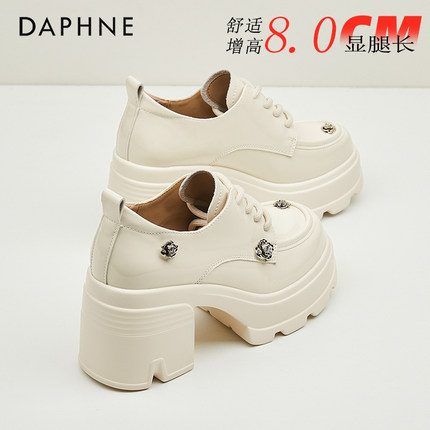 达芙妮白色山茶花小皮鞋女款小个子8cm增高乐福鞋显脚小高跟单鞋