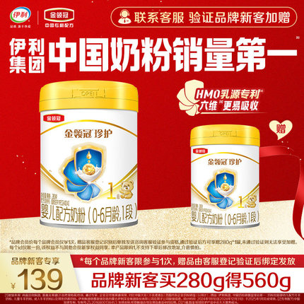 【新客3.0】伊利金领冠珍护1段280g*1罐0-6月新生宝宝奶粉买1赠1
