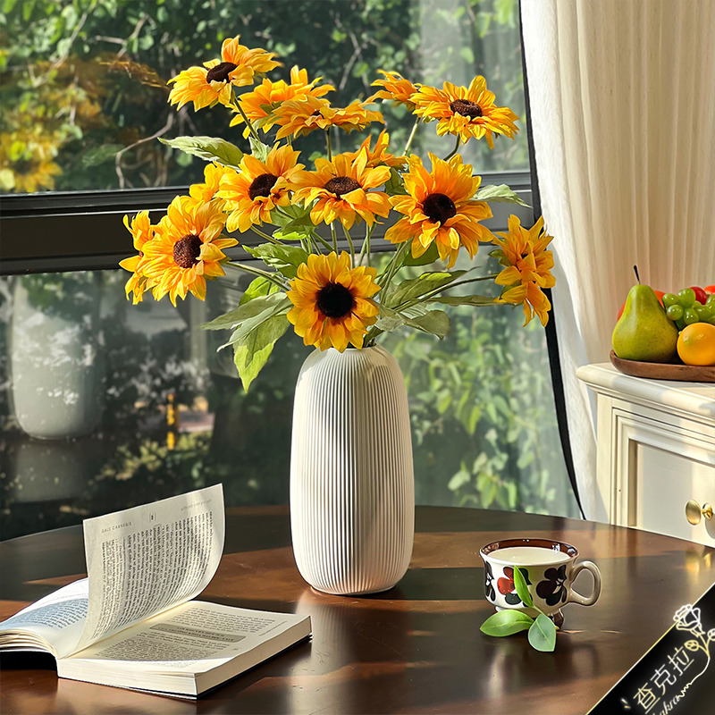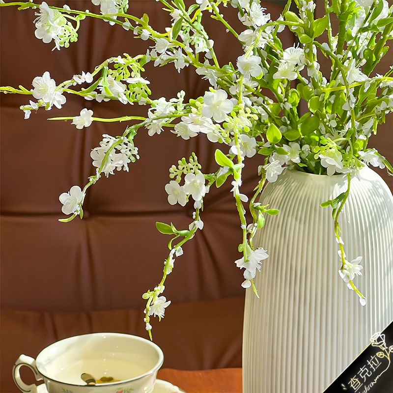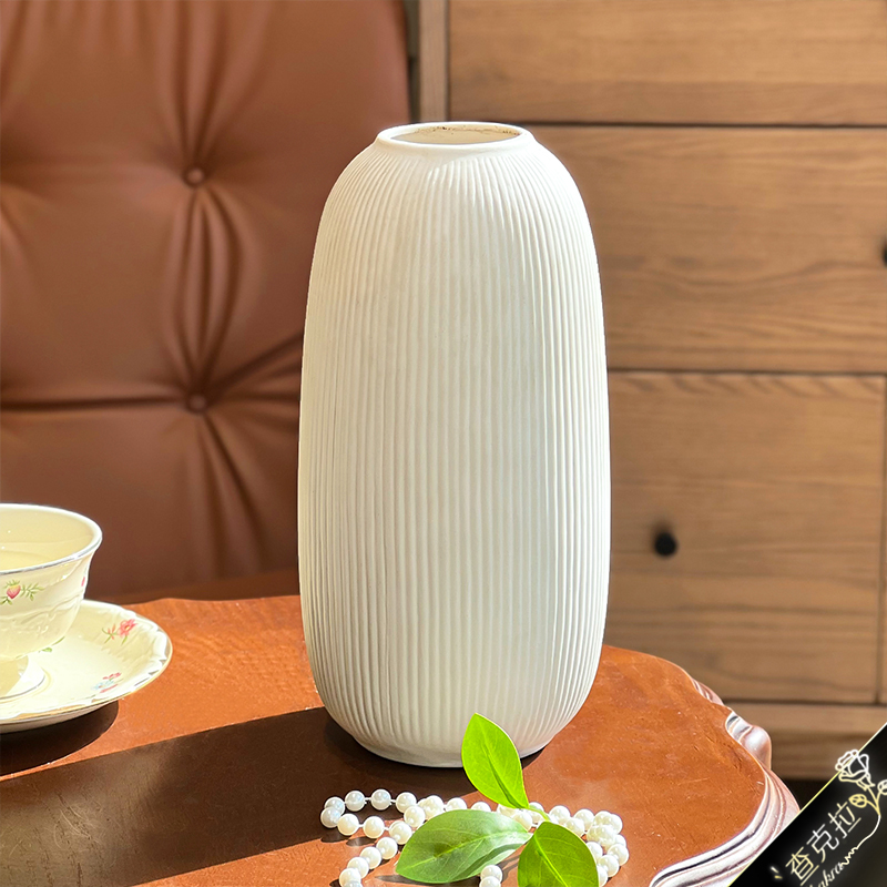 素纹陶瓷瓶北欧现代简约白色花瓶摆件客厅餐桌轻奢家居装饰品摆件