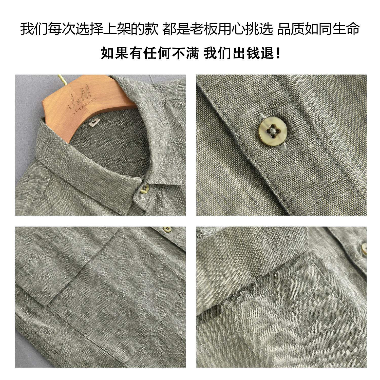 极麻复古色织口袋长袖亚麻衬衫男士日系休闲大码宽松透气棉麻衬衣