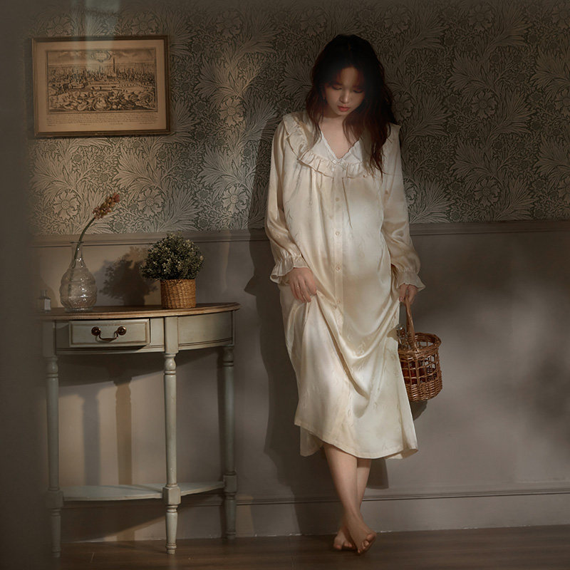 马克公主带胸垫冰丝睡裙女春夏新款法式睡衣长款纯欲公主风连衣裙