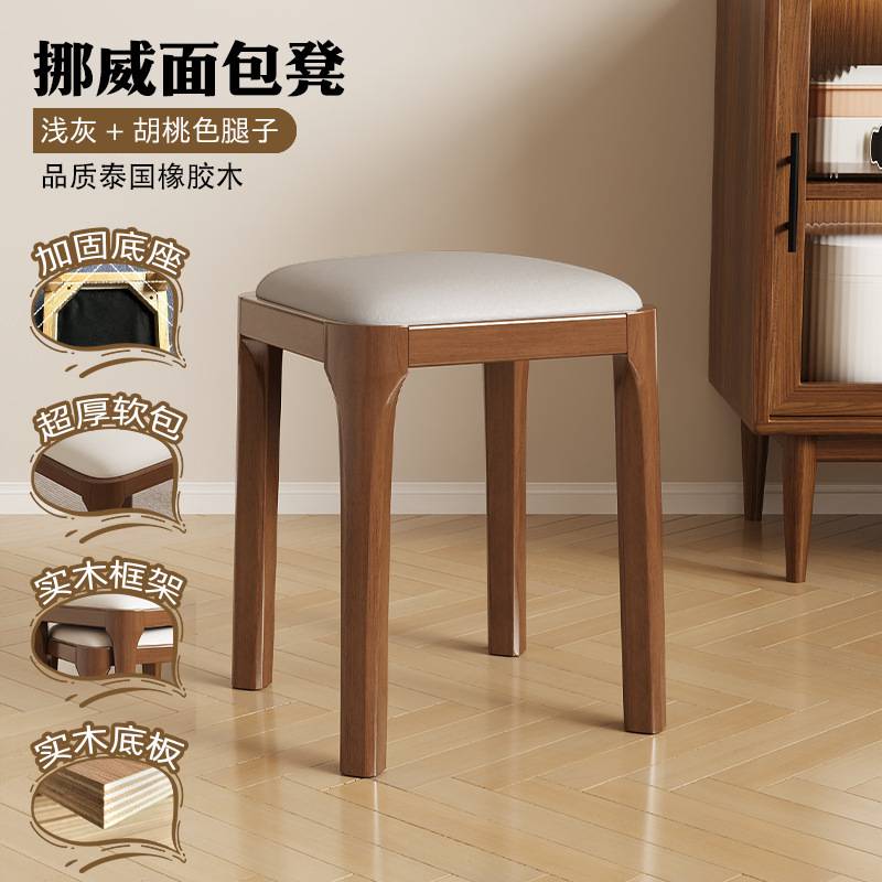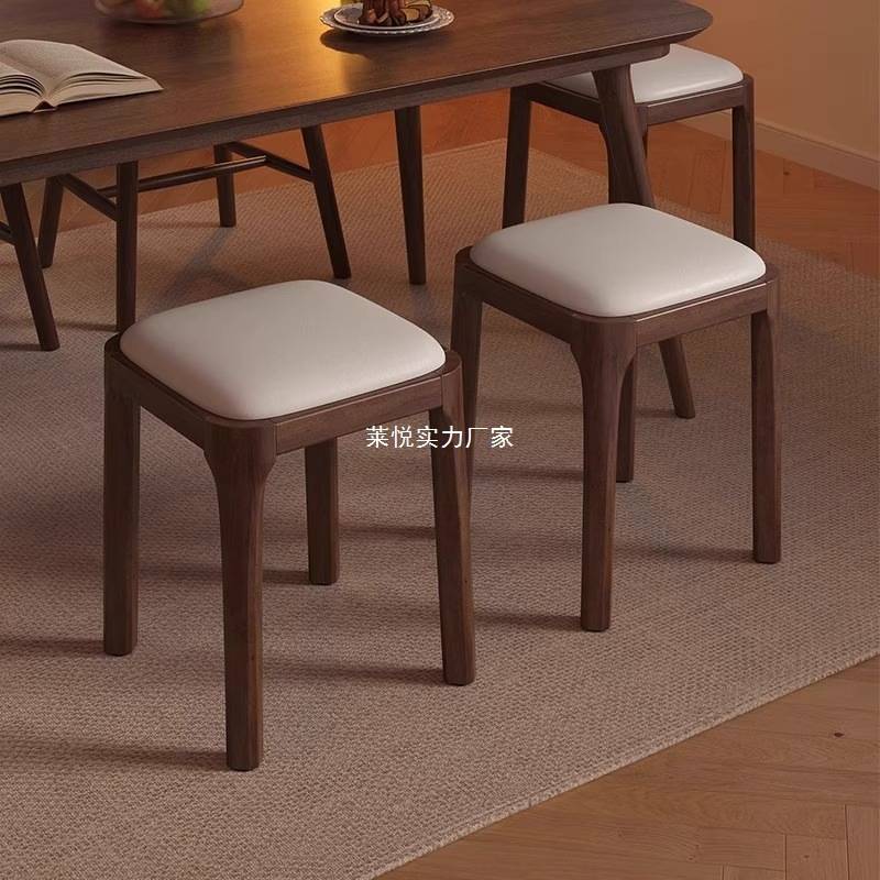 实木凳子家用客厅软包方凳餐椅可叠放简约现代矮凳小凳子木头板凳
