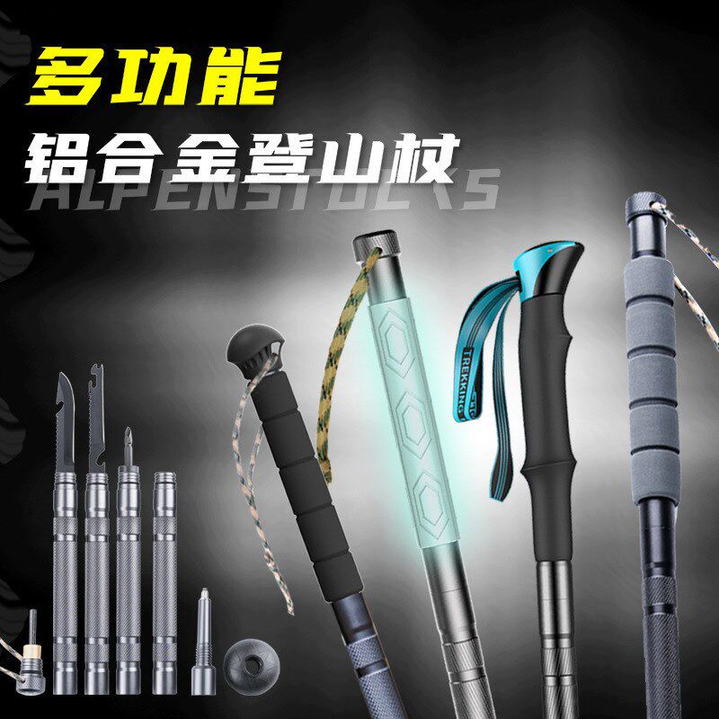 多功能登山杖户外徒步远足防身棍山地野营套装用品折叠拐棍螺丝刀