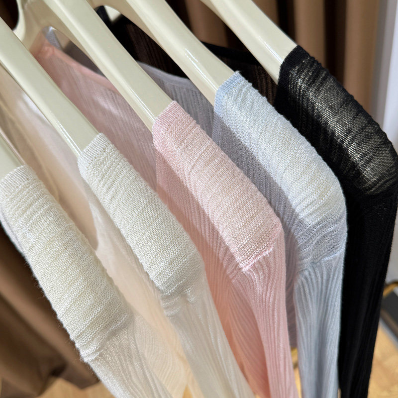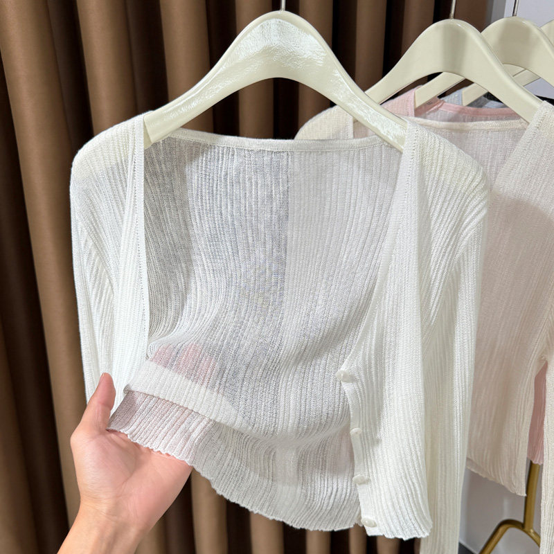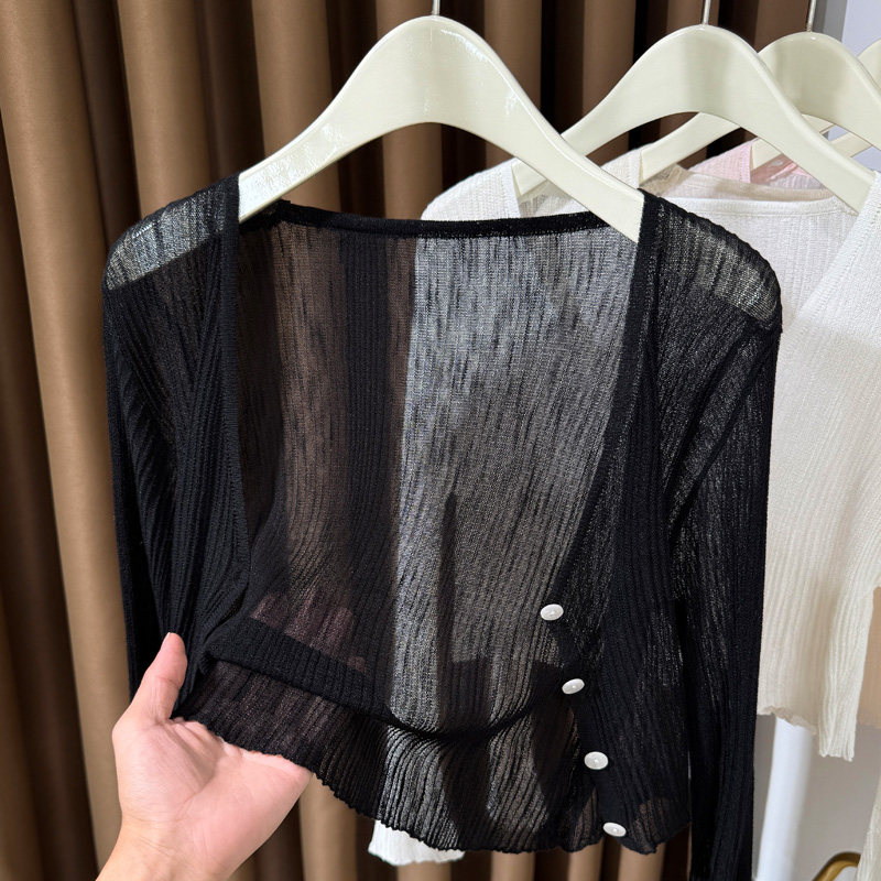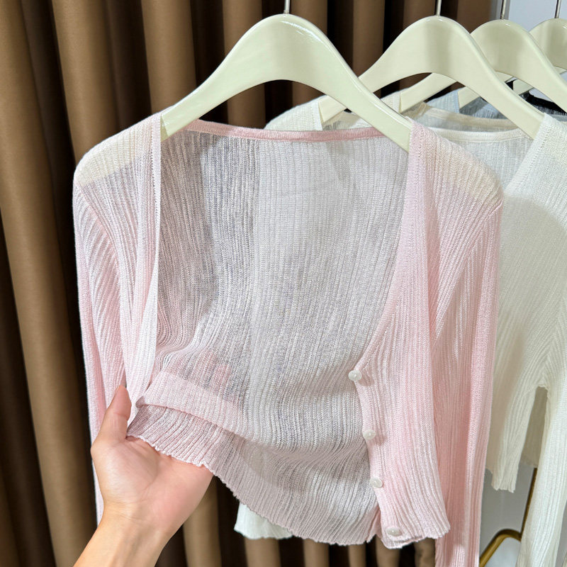 蓝色超薄冰丝开衫女夏2025新款吊带连衣裙披肩轻薄针织罩衫小外搭