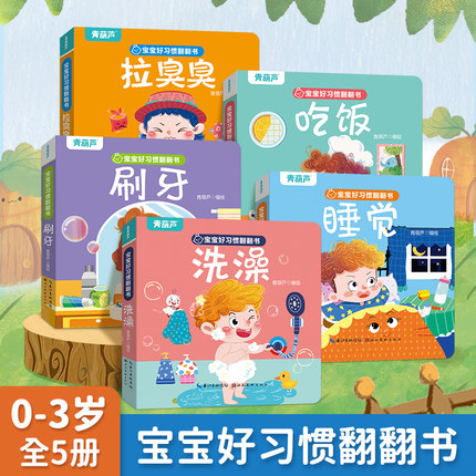 宝宝好习惯互动翻翻书全5册 幼儿早教书籍刷牙拉粑粑宝宝启蒙认知早教书撕不烂推拉机关互动读本2-3岁婴幼儿图画故事书