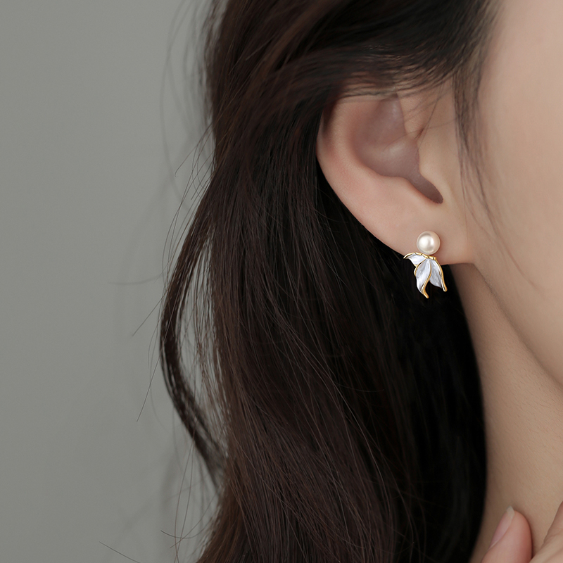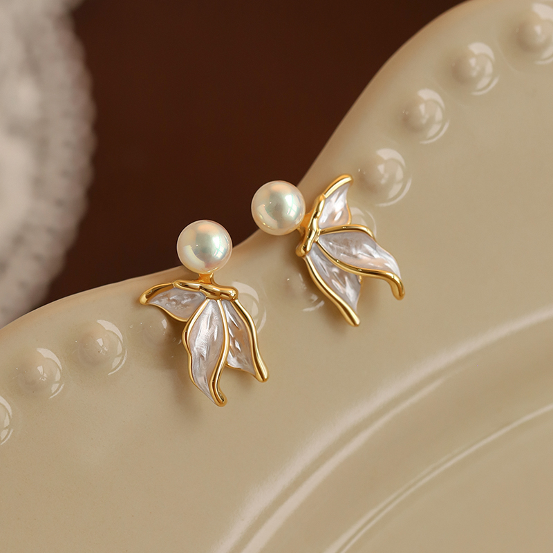 S925纯银仿珍珠鱼尾耳钉女轻奢高级感耳环气质绝美新款法式耳饰