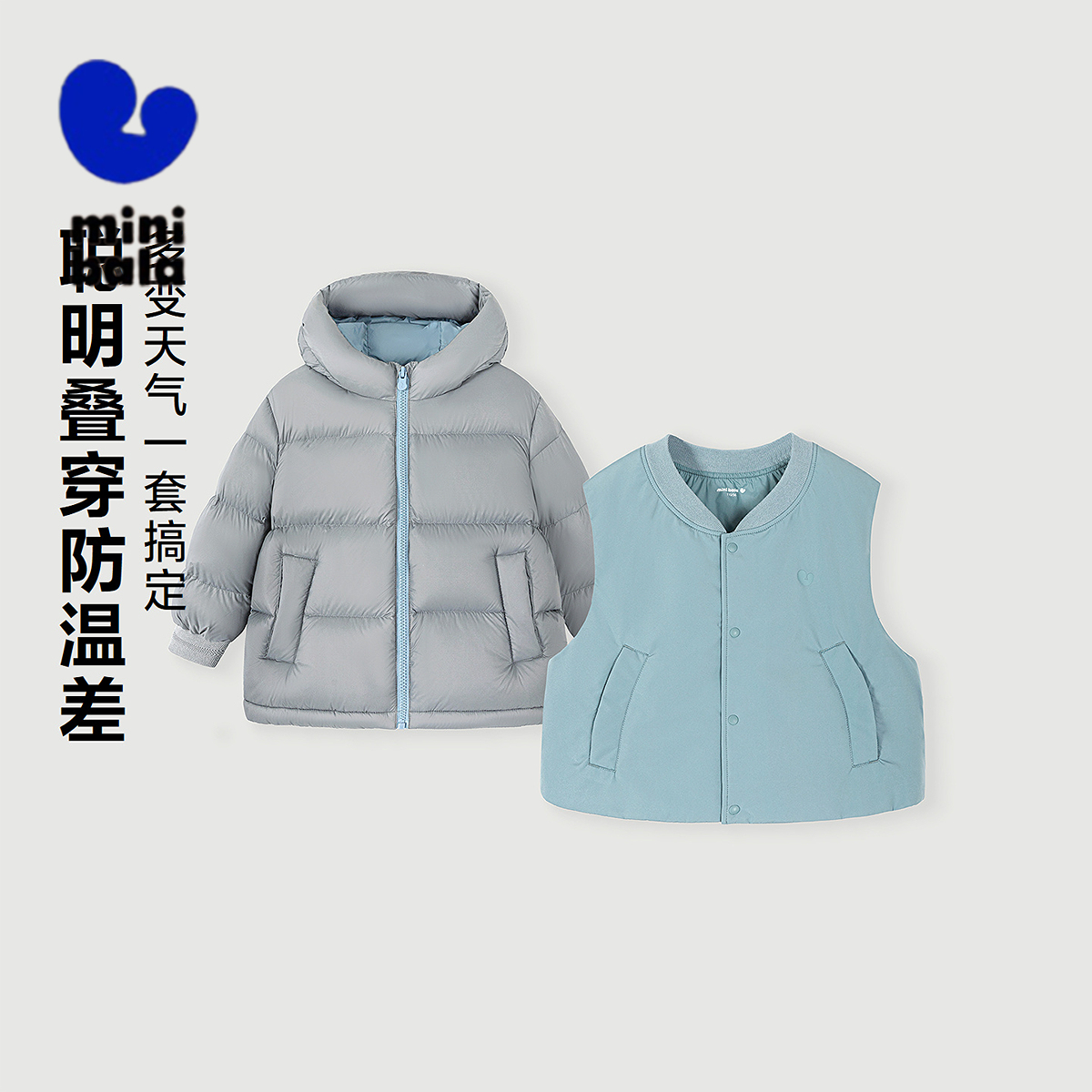 [真心绒]迷你巴拉男女童三防羽绒服儿童三合一连帽外套2025冬新款