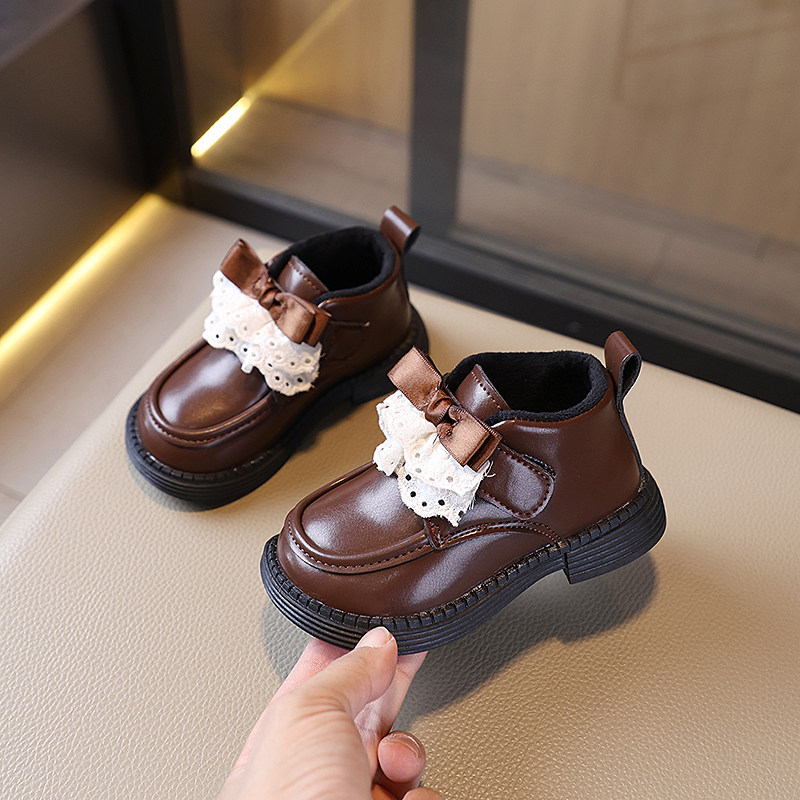 儿童皮鞋二棉女童公主鞋2025冬季新款黑色时尚百搭保暖玛丽珍皮靴