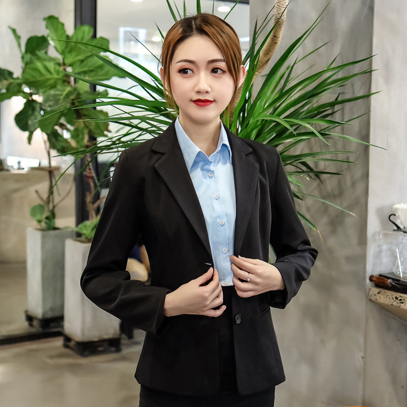 工装衬衫假领子蓝色涤棉商务