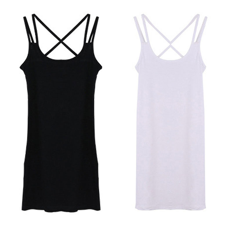 双肩带背心裙中长款莫代尔美背吊带衬裙夏内搭打底裙纯色连衣裙女