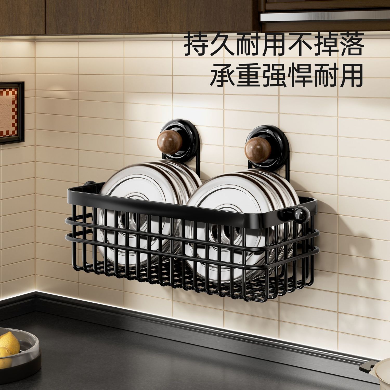 中古风葱姜蒜收纳盒壁挂式厨房吸盘置物架免打孔多功能调味料品架