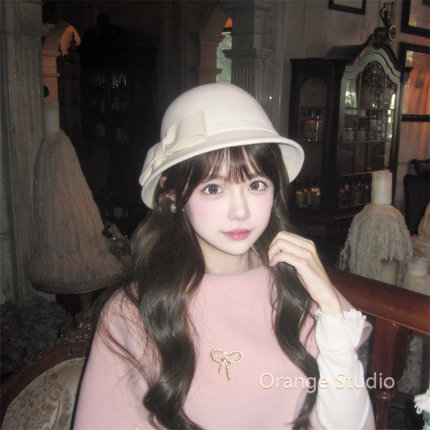 法式留洋大小姐千金帽女白色赫本风大蝴蝶结礼帽复古英伦风渔夫帽