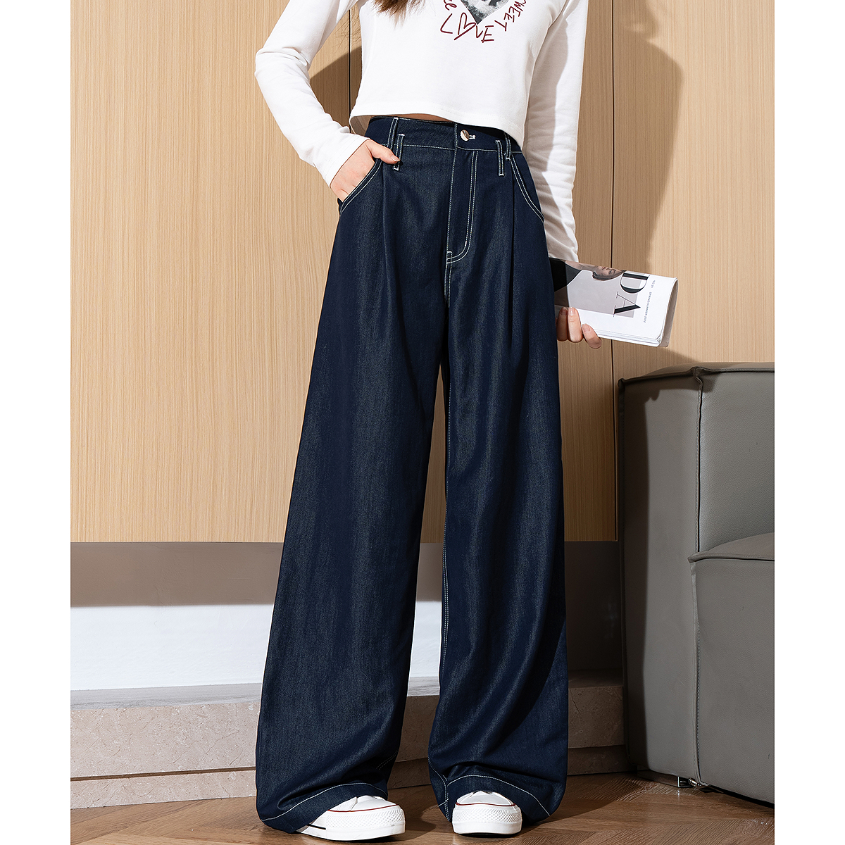 唐狮2025年春夏季新款女休闲裤蓝色阔腿复古时尚垂感宽松拖地长裤