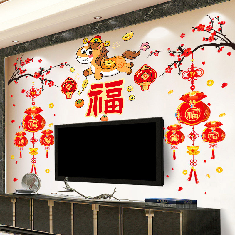 2026新年中国风客厅装饰电视机背景墙贴马年春节过年布置年画贴纸