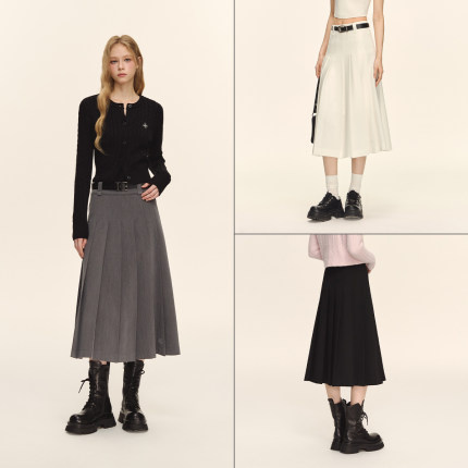 CLIMAX VISION格雷系高腰遮胯A字压褶半身西装长裙女款