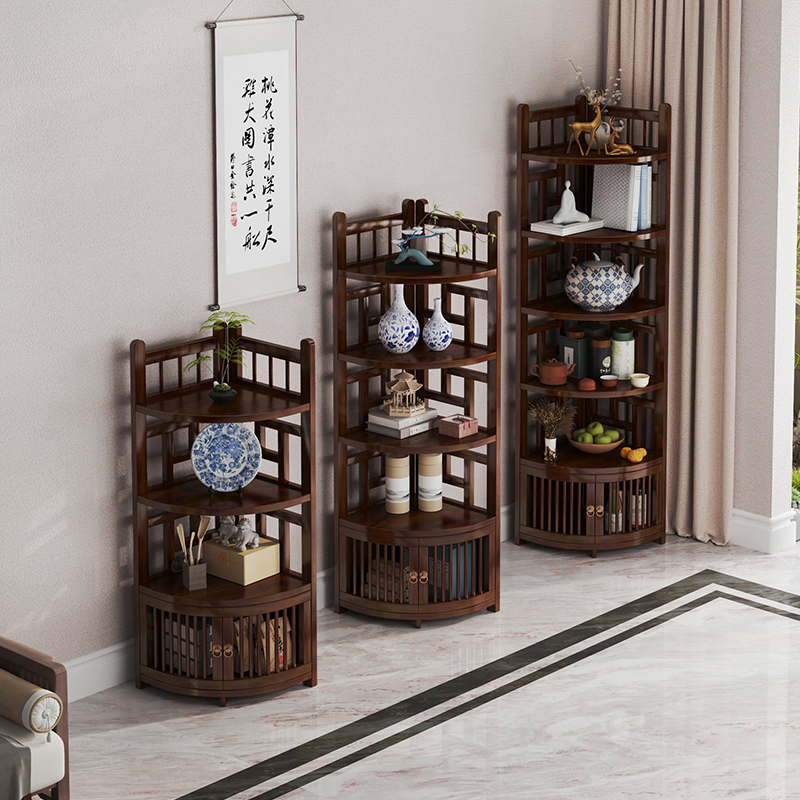 博古架新中式客厅角落小矮置物架实木转角多层装饰摆件架不占空间