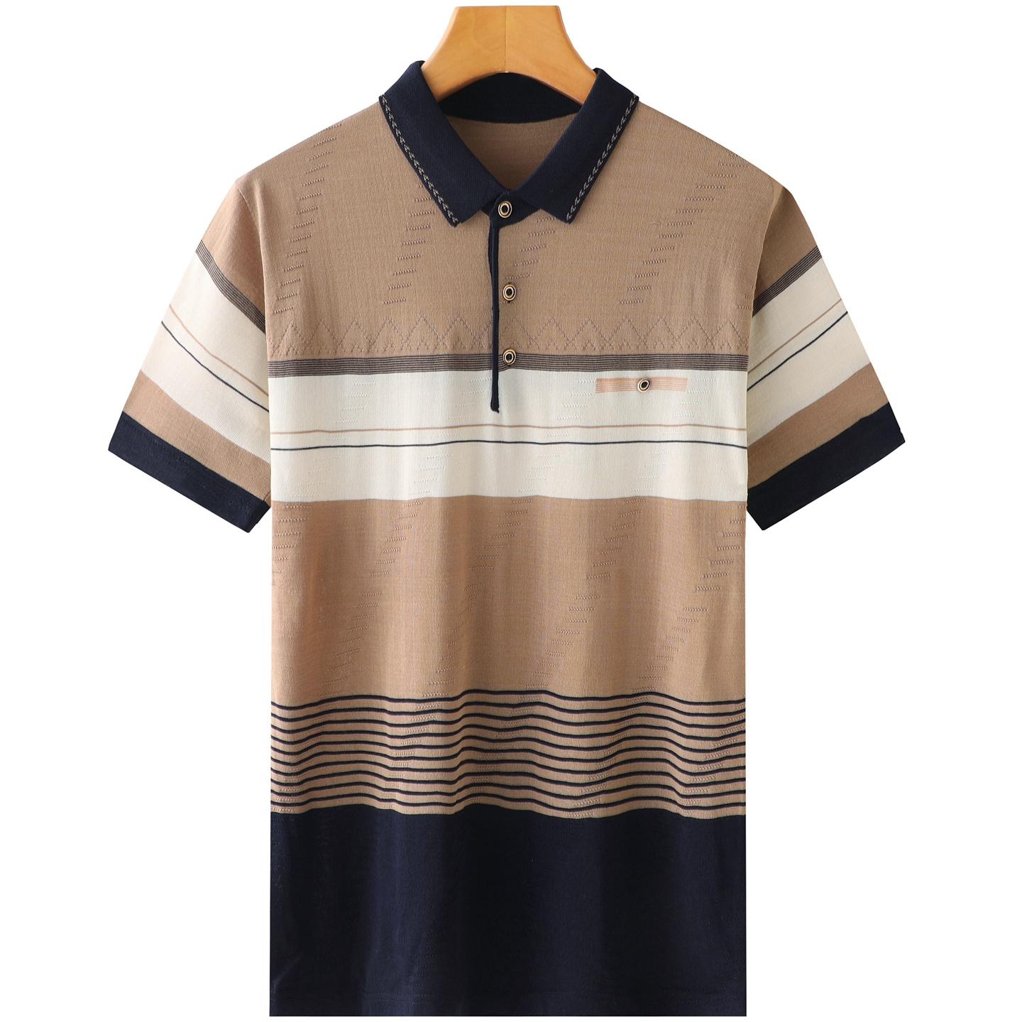 爸爸短袖t恤男装夏装40-50岁中年男士上衣服冰丝夏季中老年人爷爷