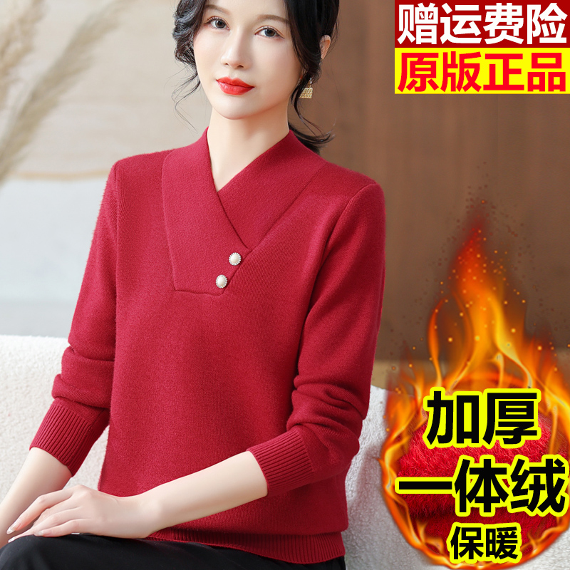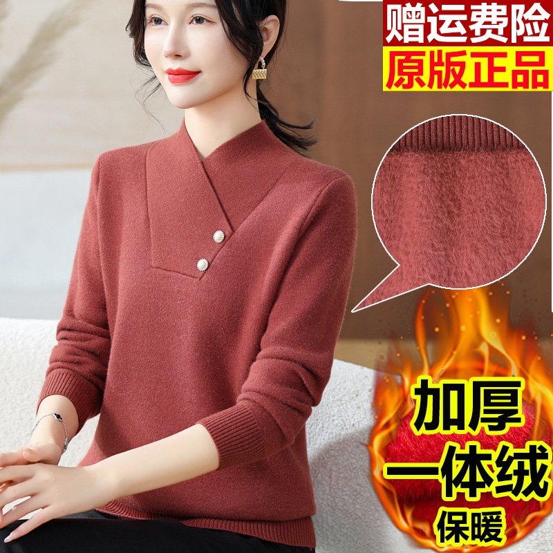 可外穿新款纯羊绒衫冬季加绒毛衣女加厚大码上衣一体绒内搭打底衫