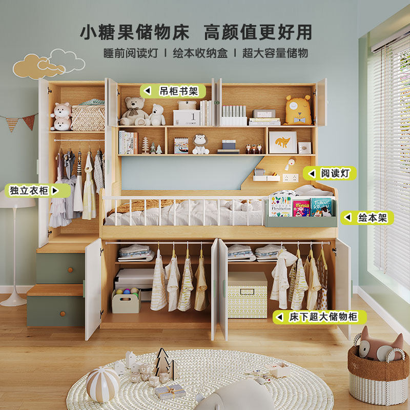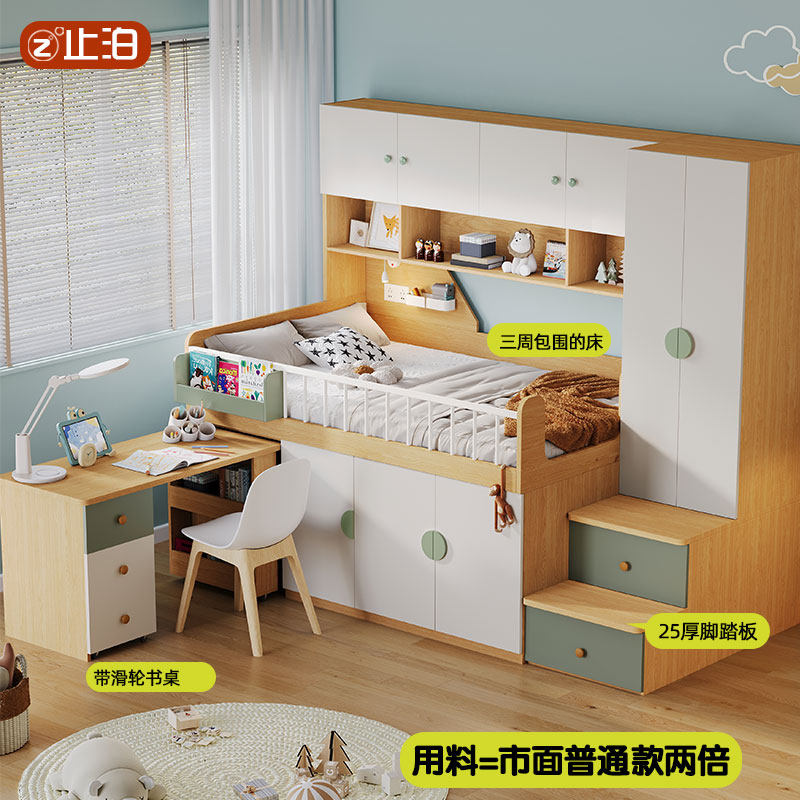 儿童床多功能储物半高床男女小户型榻榻米衣柜书桌一体组合床定制